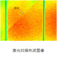 下图所示的试件为一有裂纹的太阳能硅片,但光学图像中裂纹无法显现。用激光扫描激励可以清有效地显现这一人工缺陷区域。